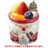 サンタ陶器にいちごムースを流し込み、スポンジ生地、いちごソース、プリンムースを重ねあわせて、オレンジ、キウィ、ブルーベリー、いちごをかざりました。