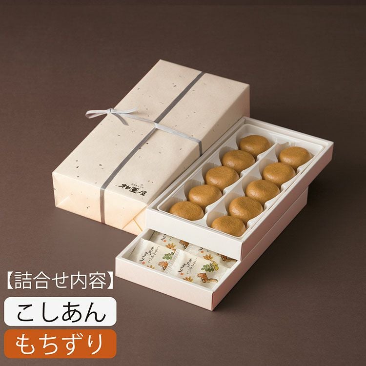 「柏屋薄皮饅頭こしあん」と「もちずり」の段詰合せ。