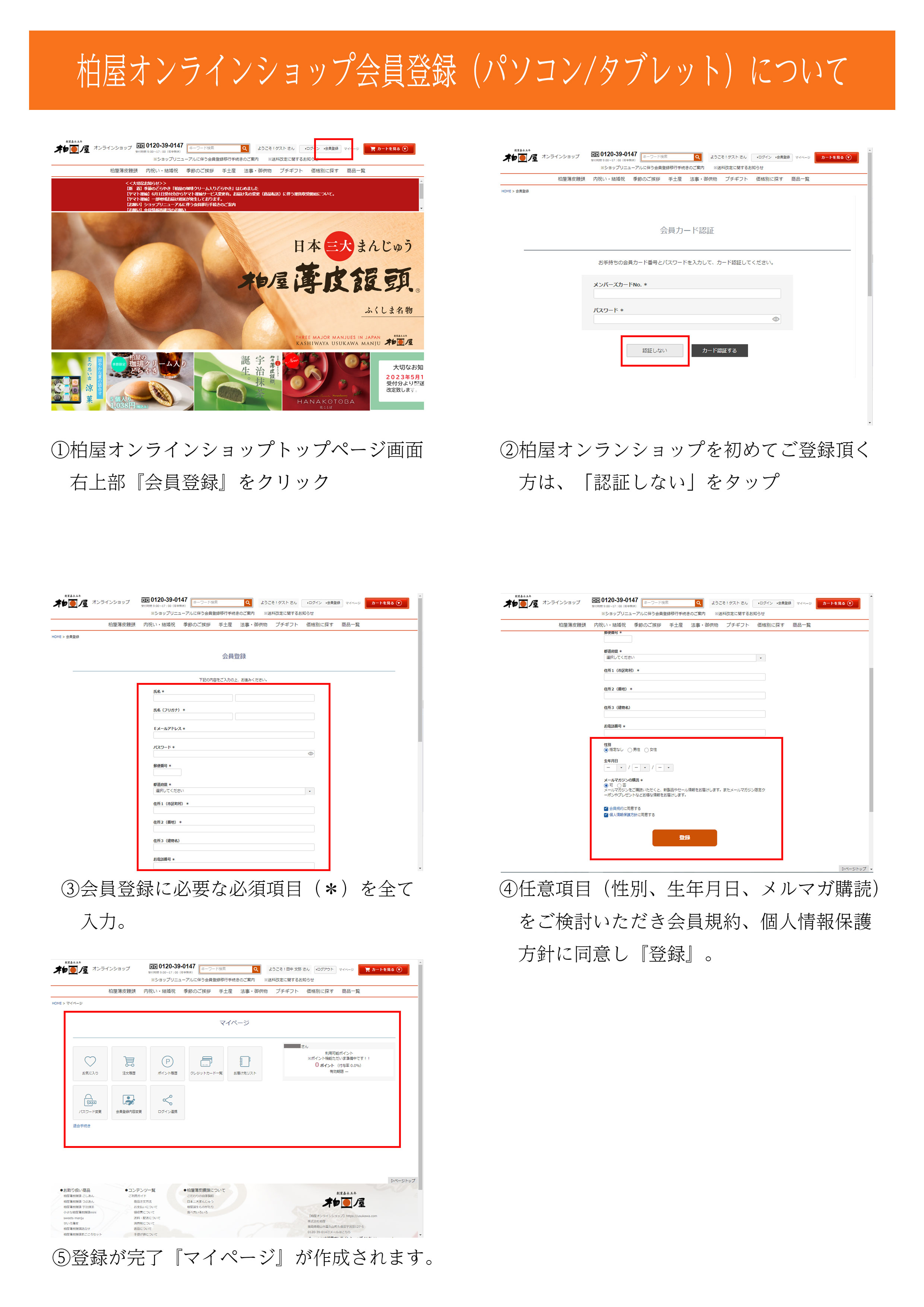 【お知らせ】柏屋オンラインショップ会員登録(パソコン・タブレット)について
